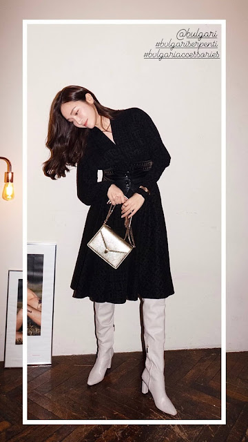 Here she is greeting everyone along with her accessories from Bvlgari~