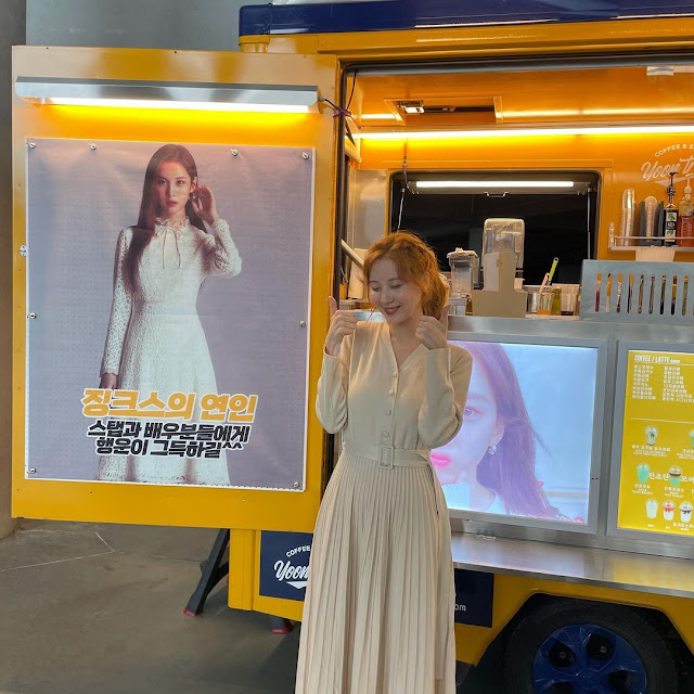 Good thing her fans and friends are always there to support her. Here she is showing her gratitude for the coffee truck which was sent by Lee Jin Hee~